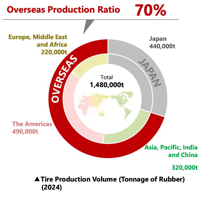 Almost three-quarters of the tires made by Bridgestone are manufactured abroad. However, the US system is specifically used to serve the US market.