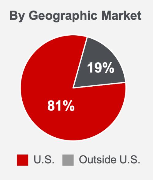The United States is by far Toro’s largest market. About 80% of sales occur in the US, while the remaining 20% are from the other 124 countries combined.