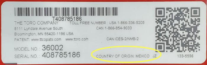 A quick way to verify where your mower might be from is to check the model and serial number plate on the equipment itself. Here are a few examples from Toro products: