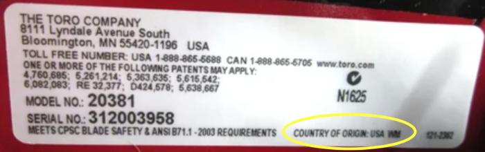 The two products that came up from that search did not specify a manufacturing location on their web pages. We even searched the product manuals and found nothing. When leads keep delivering us to dead ends, it’s time to reach out directly to the company, so that’s what we did. Here is our conversation with Toro customer service: