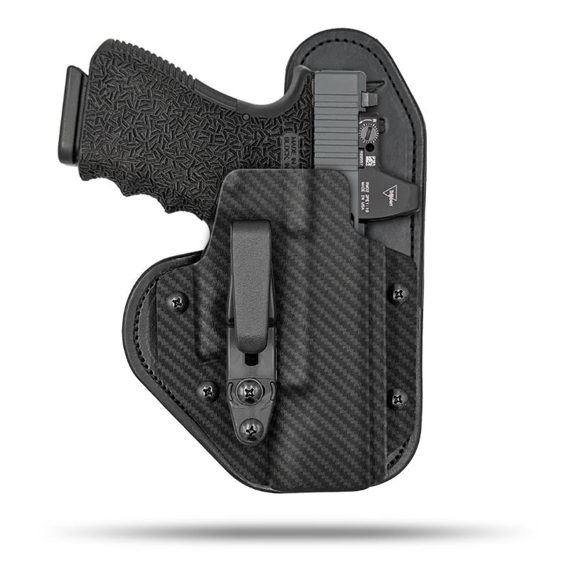 DK: Our core product, combining Kydex retention with premium leather comfort. Each holster is molded specifically to the firearm for secure, consistent retention.