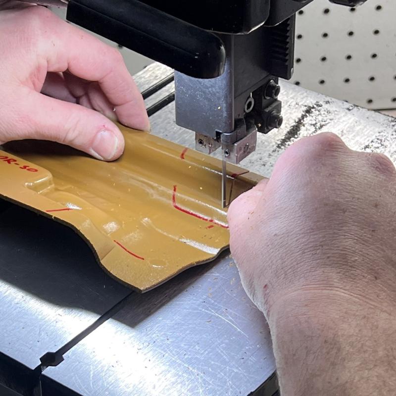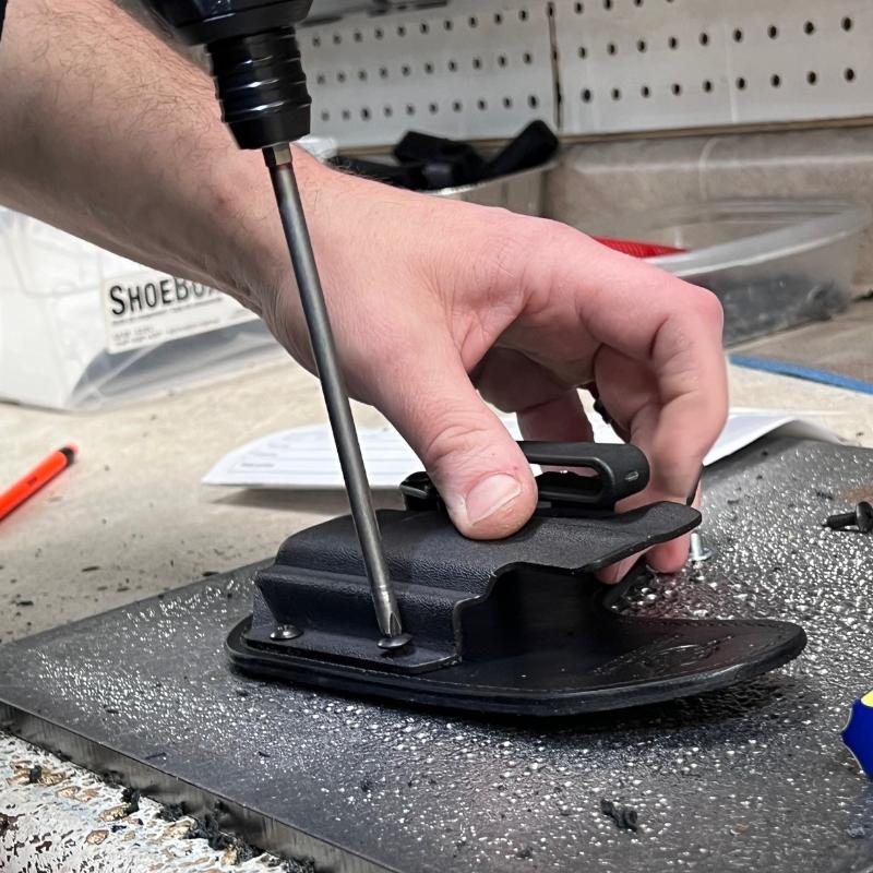 In the early days, everything was done by hand in a two-car garage with workbenches made from old kitchen countertops. We had one bench on wheels so we could move it at the end of the night, so my wife didn’t have to park in the rain or snow. There was no room or budget for fancy equipment, so we made our own molds and learned as we went. I still have the Smith & Wesson Shield from 2012 that we used to form some of our early Kydex shells. After repeatedly molding hot Kydex onto it during testing, the magwell tightened enough that the magazine started sticking. I ended up having to carefully reheat it and shim the magwell back into shape. It’s still running fine today and makes for a pretty good reminder of how DIY those early days were.